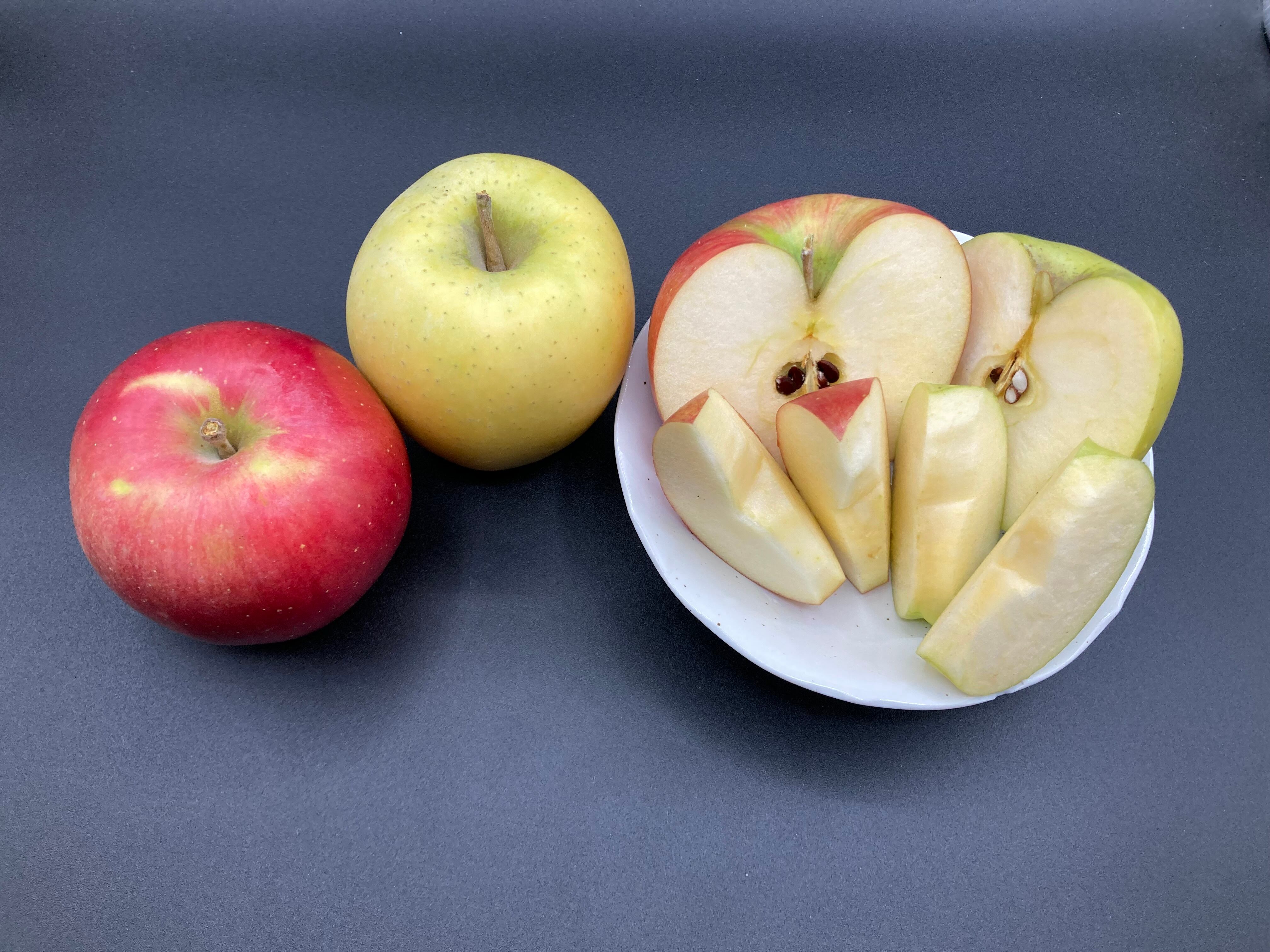 シナノスイートは、食感はサクサク、甘さは上品で控えめ。特に食べごろになると、ほんのり香る酸味も感じられ、まさに理想的なりんごです。品種特有のシャキシャキとした食感と、爽やかな甘さが魅力的。幅広い年代の方に愛されています。